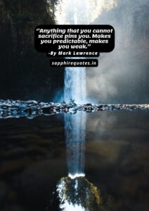 44) ”Anything that you cannot sacrifice pins you. Makes you predictable, makes you weak.”- Mark Lawrence