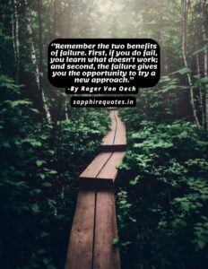 45) ”Remember the two benefits of failure. First, if you do fail, you learn what doesn’t work; and second, the failure gives you the opportunity to try a new approach.” –