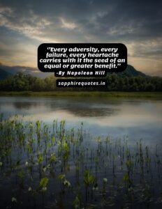 57) ”Every adversity, every failure, every heartache carries with it the seed of an equal or greater benefit.” -Napoleon Hill