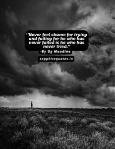 62) ”Never feel shame for trying and failing for he who has never failed is he who has never tried.” -Og Mandino