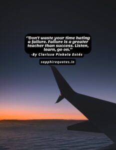 65) ”Don’t waste your time hating a failure. Failure is a greater teacher than success. Listen, learn, go on.” –
