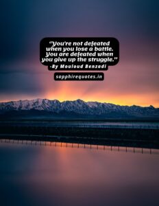 79) ”You’re not defeated when you lose a battle. You are defeated when you give up the struggle.” -Mouloud Benzadi