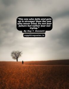 35) ”The one who falls and gets up is stronger than the one who never tried. Do not fear failure but rather fear not trying.” -Roy T. Bennett