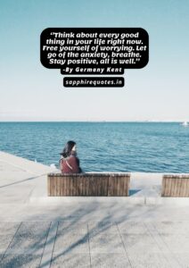 04) ”Think about every good thing in your life right now. Free yourself of worrying. Let go of the anxiety, breathe. Stay positive, all is well.” -Germany Kent