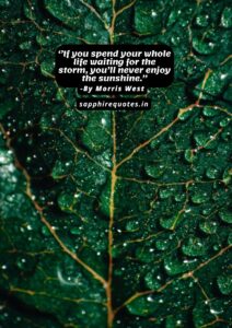 58) ”If you spend your whole life waiting for the storm, you’ll never enjoy the sunshine.” –Morris West