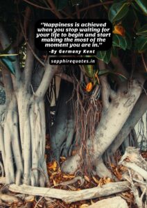 41) ”Happiness is achieved when you stop waiting for your life to begin and start making the most of the moment you are in.” –Germany Kent