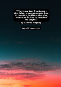 03) ”There are two freedoms – the false, where a man is free to do what he likes; the true, where he is free to do what he ought.”