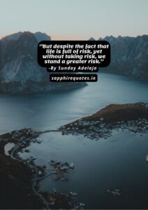 69) ”But despite the fact that life is full of risk, yet without taking risk, we stand a greater risk.”