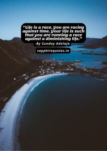 73) ”Life is a race. You are racing against time. Your life is such that you are running a race against a diminishing life.”