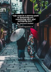 102) ”Life runs in a narrow path to balancing act, convincing tact, and satisfying fact.”