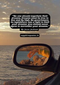 14)  ”No one should negotiate their dreams. Dreams must be free to flee and fly high. No government, no legislature, has a right to limit your dreams. You should never agree to surrender your dreams.”