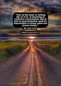 01) ”One of the keys to taking life as it is, is learning to embrace uncertainty. Life is full of uncertainties, and it’s impossible to know what the future holds.”