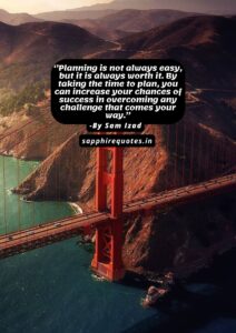 08) ”Planning is not always easy, but it is always worth it. By taking the time to plan, you can increase your chances of success in overcoming any challenge that comes your way.”