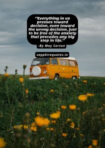 24) ”Everything in us presses toward decision, even toward the wrong decision, just to be free of the anxiety that precedes any big step in life.” -May Sarton