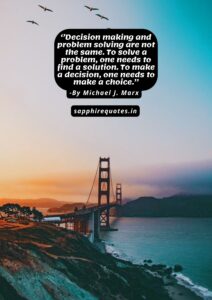 26) ”Decision making and problem solving are not the same. To solve a problem, one needs to find a solution. To make a decision, one needs to make a choice.” -Michael J. Marx