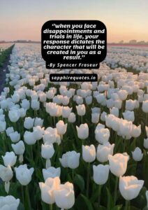 42) ”when you face disappointments and trials in life, your response dictates the character that will be created in you as a result.” -Spencer Fraseur