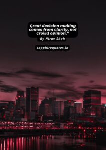 51) ”Great decision making comes from clarity, not crowd opinion.” -Hirav Shah