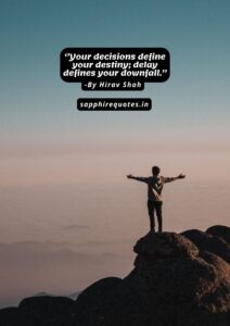 53) ”Your decisions define your destiny; delay defines your downfall.” -Hirav Shah