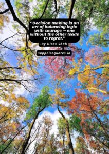 54) ”Decision making is an art of balancing logic with courage — one without the other leads to regret.” -Hirav Shah