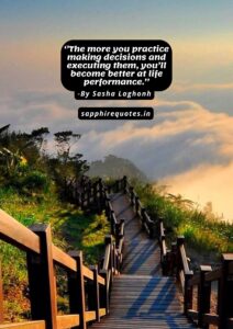 67) ”The more you practice making decisions and executing them, you’ll become better at life performance.” -Sasha Laghonh