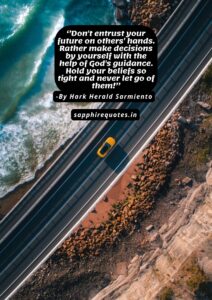 08) ”Don’t entrust your future on others’ hands. Rather make decisions by yourself with the help of God’s guidance. Hold your beliefs so tight and never let go of them!” -Hark Herald Sarmiento