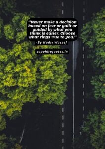 82) ”Never make a decision based on fear or guilt or guided by what you think is easier. Choose what rings true to you.” -Nadia Wassef