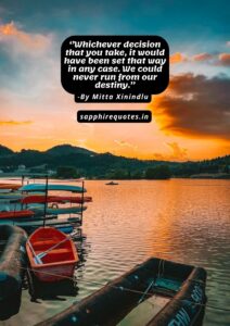 87) ”Whichever decision that you take, it would have been set that way in any case. We could never run from our destiny.” -Mitta Xinindlu