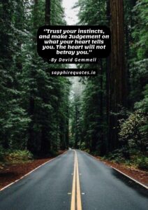 10) ”Trust your instincts, and make Judgement on what your heart tells you. The heart will not betray you.” -David Gemmell