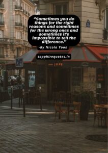 101) ”Sometimes you do things for the right reasons and sometimes for the wrong ones and sometimes it’s impossible to tell the difference.” -Nicola Yoon