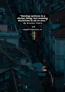 107) ”Having options is a divine thing, but making decisions is up to you.” -Brother Pedro