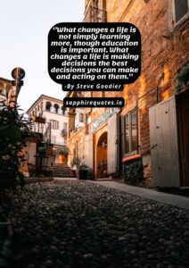 109) ”What changes a life is not simply learning more, though education is important. What changes a life is making decisions the best decisions you can make and acting on them.” –