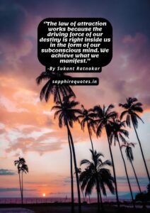 114) ”The law of attraction works because the driving force of our destiny is right inside us in the form of our subconscious mind. We achieve what we manifest.” -Sukant Ratnakar