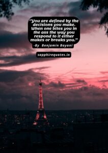 117) ”You are defined by the decisions you make. When one bites you in the ass the way you respond to it either makes or breaks you.” –