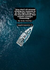 141) ”You don’t sit around looking for reasons to do the right thing; it’s the bad decisions that require creative reasoning.” -Andy Stanley