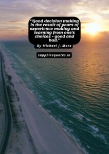 191) ”Good decision making is the result of years of experience making and learning from one’s choices – good and bad.” -Michael J. Marx