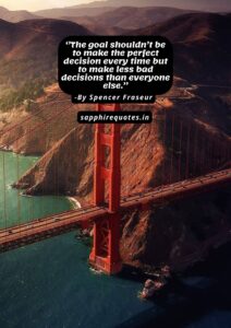22) ”The goal shouldn’t be to make the perfect decision every time but to make less bad decisions than everyone else.” –