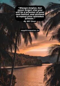 74) ”Always forgive, but never forget, else you will be a prisoner of your own hatred, and doomed to repeat your mistakes forever.” –