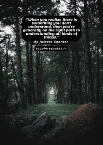 84) ”When you realize there is something you don’t understand, then you’re generally on the right path to understanding all kinds of things.” -Jostein Gaarder