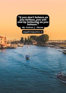 93) ”If you don’t behave as you believe, you will end by believing as you behave.” -Fulton J. Sheen