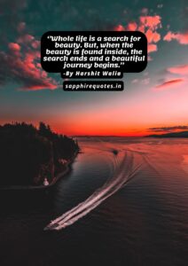 157) ”Whole life is a search for beauty. But, when the beauty is found inside, the search ends and a beautiful journey begins.” -Harshit Walia