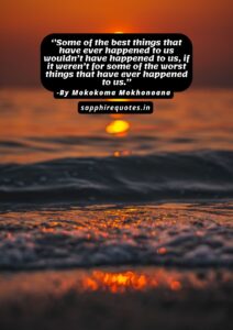 177) ”Some of the best things that have ever happened to us wouldn’t have happened to us, if it weren’t for some of the worst things that have ever happened to us.” –