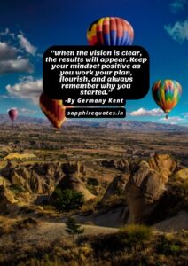 66) ”When the vision is clear, the results will appear. Keep your mindset positive as you work your plan, flourish, and always remember why you started.”