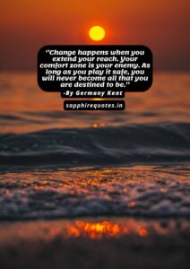 78) ”Change happens when you extend your reach. Your comfort zone is your enemy. As long as you play it safe, you will never become all that you are destined to be.”
