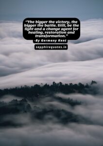 85) ”The bigger the victory, the bigger the battle. Still, be the light and a change agent for healing, restoration and transformation.”