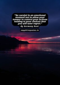 109) ”Be careful in an emotional moment not to allow your temper to control your actions leading to poor choices that you will later regret.”