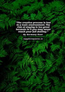 117) ”The creative process is lost in a toxic environment. The risk of staying is too great because in it you may never reach your full destiny.”