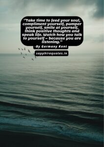 128) ”Take time to feed your soul, compliment yourself, pamper yourself, smile at yourself, think positive thoughts and speak life. Watch how you talk to yourself – because you are listening.”