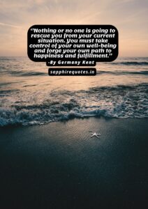 137) ”Nothing or no one is going to rescue you from your current situation. You must take control of your own well-being and forge your own path to happiness and fulfillment.”