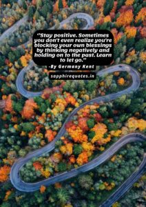 50) ”Stay positive. Sometimes you don’t even realize you’re blocking your own blessings by thinking negatively and holding on to the past. Learn to let go.”