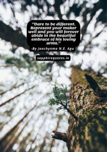 20) ”Dare to be different. Represent your maker well and you will forever abide in the beautiful embrace of his loving arms.”